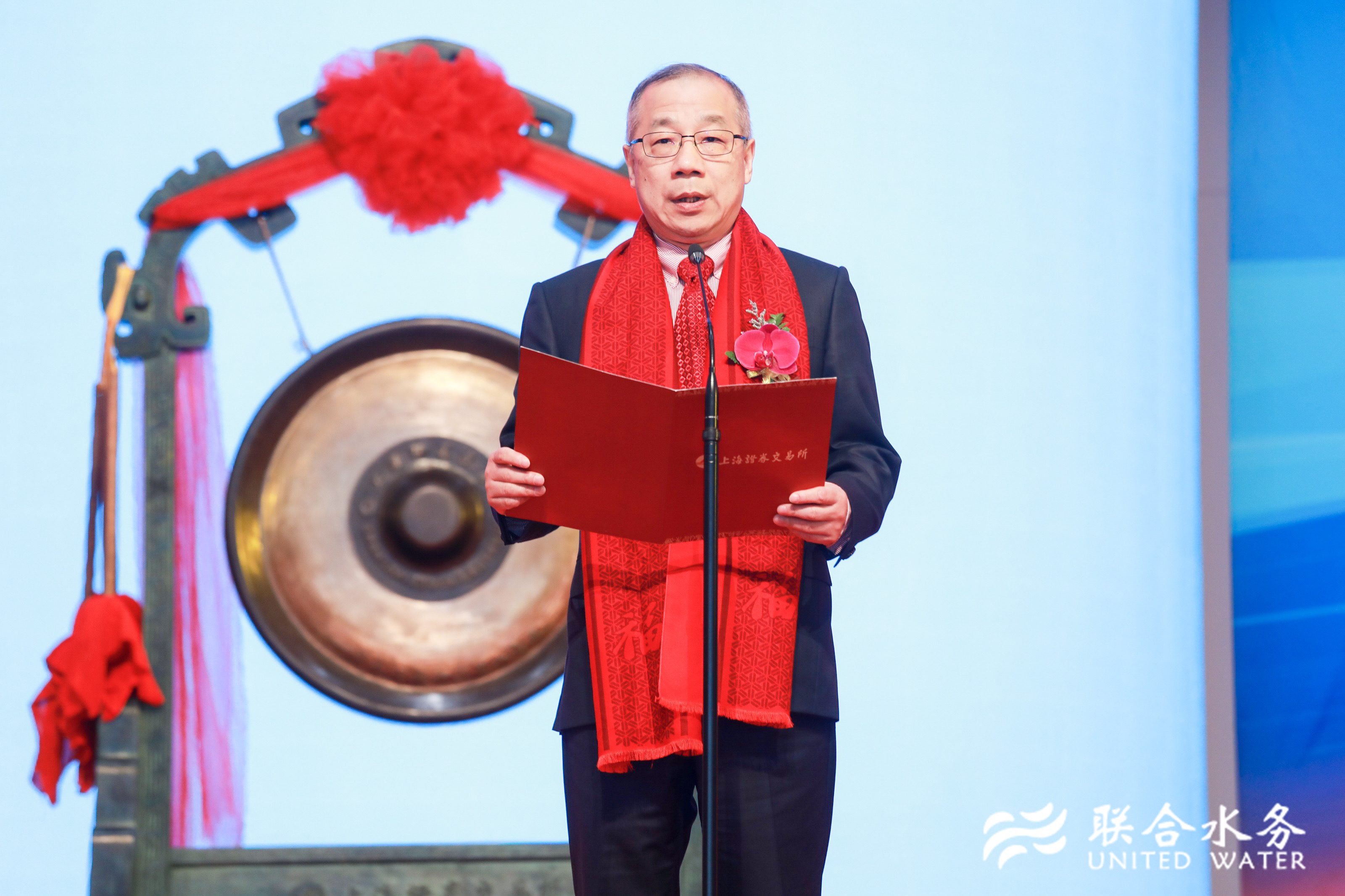 董事長兼總裁俞偉景在儀式上致辭 儀式上,聯(lián)合水務(wù)董事長兼總裁俞偉景與上海證券交易所黨委委員、副總經(jīng)理董國群簽訂了《上市協(xié)議書》。