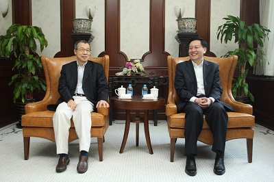 (俞偉景董事長與交大黨委書記姜斯憲在徐匯校區(qū)總辦公廳會面)