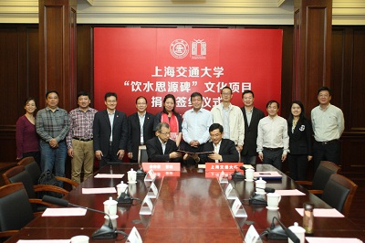 俞偉景、晉琰夫婦在簽約儀式前與交大校黨委書記姜斯憲會面,姜斯憲對他們秉持“飲水思源,愛國榮!本,在事業(yè)有所成就以后回饋母校的感恩情懷表示贊賞和感謝。雙方以學長相稱,共同回憶了在上世紀八十年代初期交大求學期間的往事,以及執(zhí)信西齋(第一宿舍)前的“飲水思源碑”在每一位交大人心底的特殊意義,它見證了一代代交大人拼搏奮斗的歷史,也和交大一起經(jīng)歷風雨、共筑輝煌,是屹立于交大人的心靈深處的豐碑,是交大人的精神之源。
