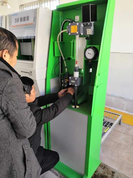 近期,王英水廠在年前設(shè)備檢修中,發(fā)現(xiàn)4#加氯機(jī)浮子流量計(jì)有異常現(xiàn)象,浮子上下跳動(dòng)不規(guī)律,有時(shí)完全上浮不起來,影響到加氯量穩(wěn)定性。為保證制水生產(chǎn)安全,機(jī)電設(shè)備部立即組織技術(shù)人員,對(duì)該加氯機(jī)進(jìn)行檢修。 詳細(xì)觀察后,開始認(rèn)為是加氯管道堵塞,拆開管道未看到異物,氯氣進(jìn)出管道沒有看到懷疑點(diǎn),進(jìn)而對(duì)加氯機(jī)內(nèi)部進(jìn)行研究;逐一對(duì)連接件進(jìn)行拆解測(cè)試,最后判斷出故障點(diǎn)應(yīng)在減壓調(diào)節(jié)器上。該調(diào)節(jié)器結(jié)構(gòu)各真空調(diào)節(jié)器相似,估計(jì)是調(diào)節(jié)器內(nèi)部膜片覆蓋的腔體間進(jìn)氣不通暢,導(dǎo)致氯氣無法與調(diào)節(jié)器穩(wěn)定、通暢輸出。 維修人員將現(xiàn)場(chǎng)情況與設(shè)備售后工程師溝進(jìn)行通,給出意見可能是調(diào)節(jié)器內(nèi)有殘?jiān)愇,堵塞腔體連通孔。小心翼翼拆開后果然看到里面有不少粉末性殘?jiān),整個(gè)膜片上附著一層鐵銹灰一樣?xùn)|西,各個(gè)小腔體內(nèi)殘留著褐色粉末。維修人員對(duì)拆解開的減壓調(diào)節(jié)器用溫水細(xì)細(xì)進(jìn)行清洗,然后放在太陽底下曬了幾個(gè)小時(shí),水漬完全干后再安裝到加氯機(jī)上進(jìn)行調(diào)試。加氯管道閥門開啟后,立即恢復(fù)正常運(yùn)行。 經(jīng)過這幾天觀察,該加氯機(jī)再未出來類似故障現(xiàn)象。